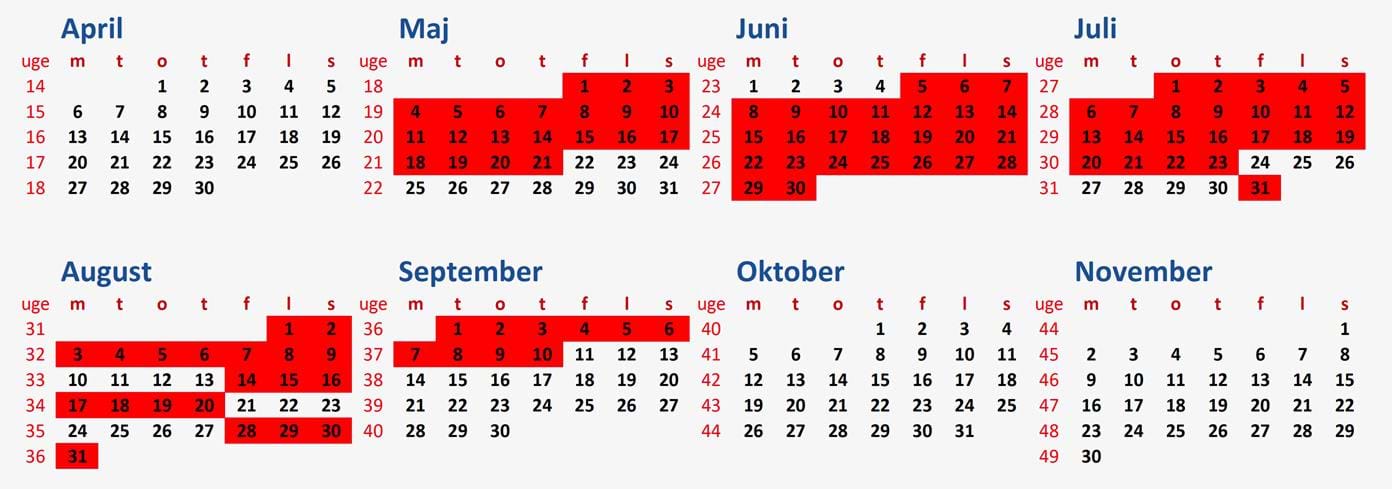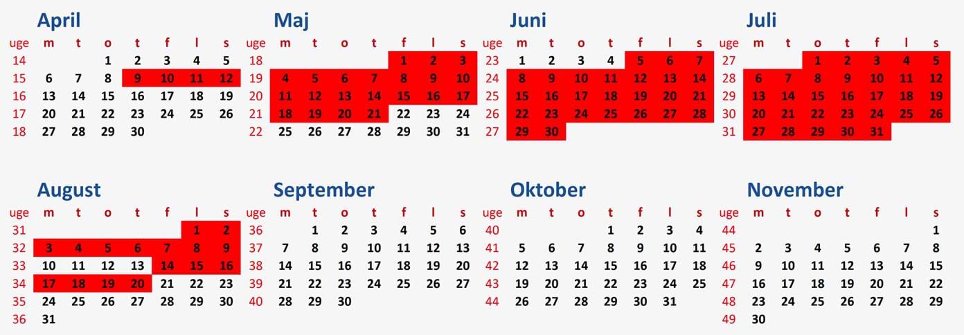 9. oktober – 19. oktober (uge 42 - bemærk 10 dage for 1 uges pris)